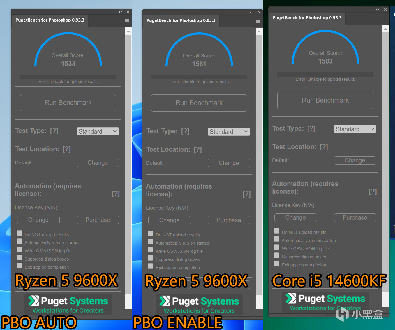 在Adobe全家桶中,Photoshop對比單核性能是較爲敏感的,也牽涉到一定多核方面,最終銳龍5 9600X還是存在一些優勢,開啓PBO後可領先14600KF大約3.9%左右。總得來說,如果你不是追求大型生產力項目,擁有強大單核性能的銳龍5 9600X一定是更適合,包括下面所說到遊戲功耗表現也會更優秀。