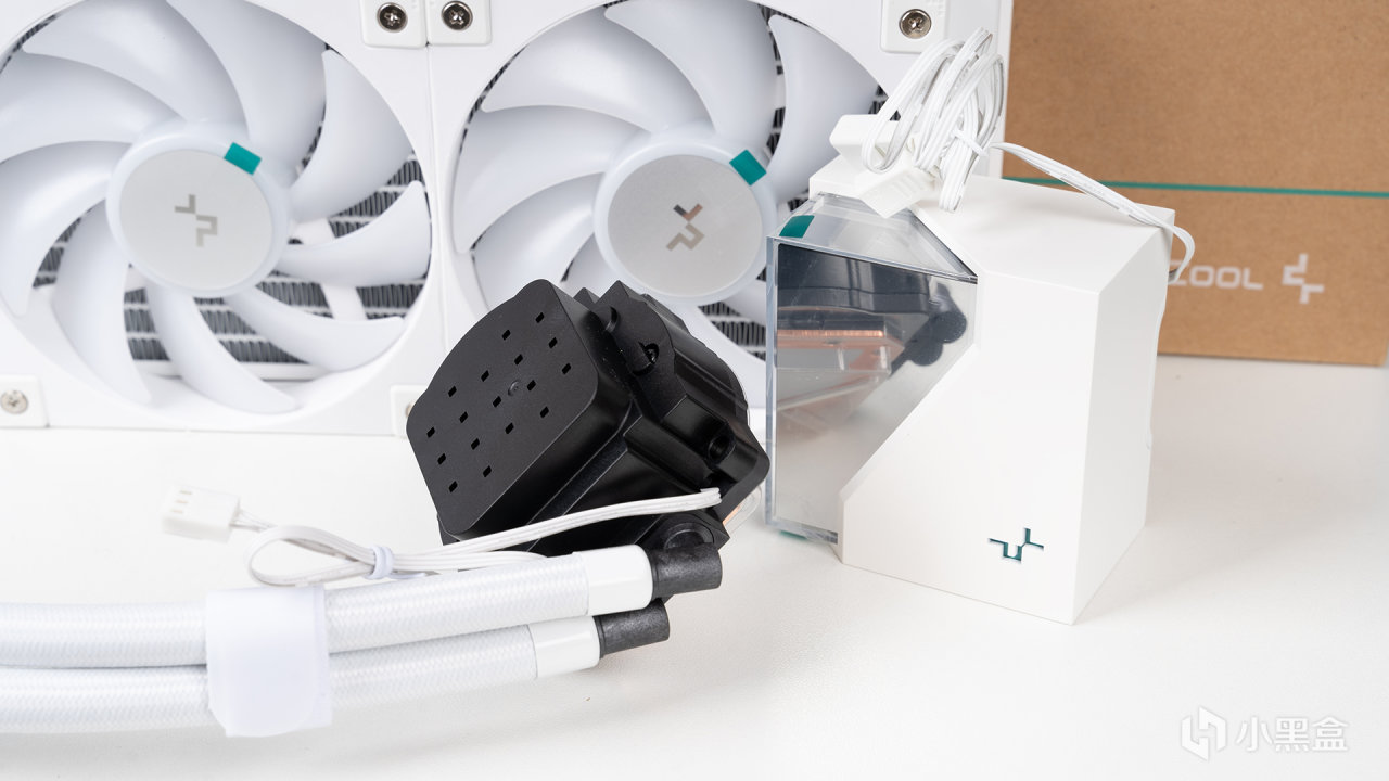 搭載測試的CPU散熱器,來自九州風神的LT360冰魔方ARGB白色版本,設計美感相當不錯,風扇出廠預裝在冷排上,燈光和供電是整合式8pin接口,可減少不必要的裝機步驟,水冷管上也自帶魔術紮帶,細節相當貼心和人性化。