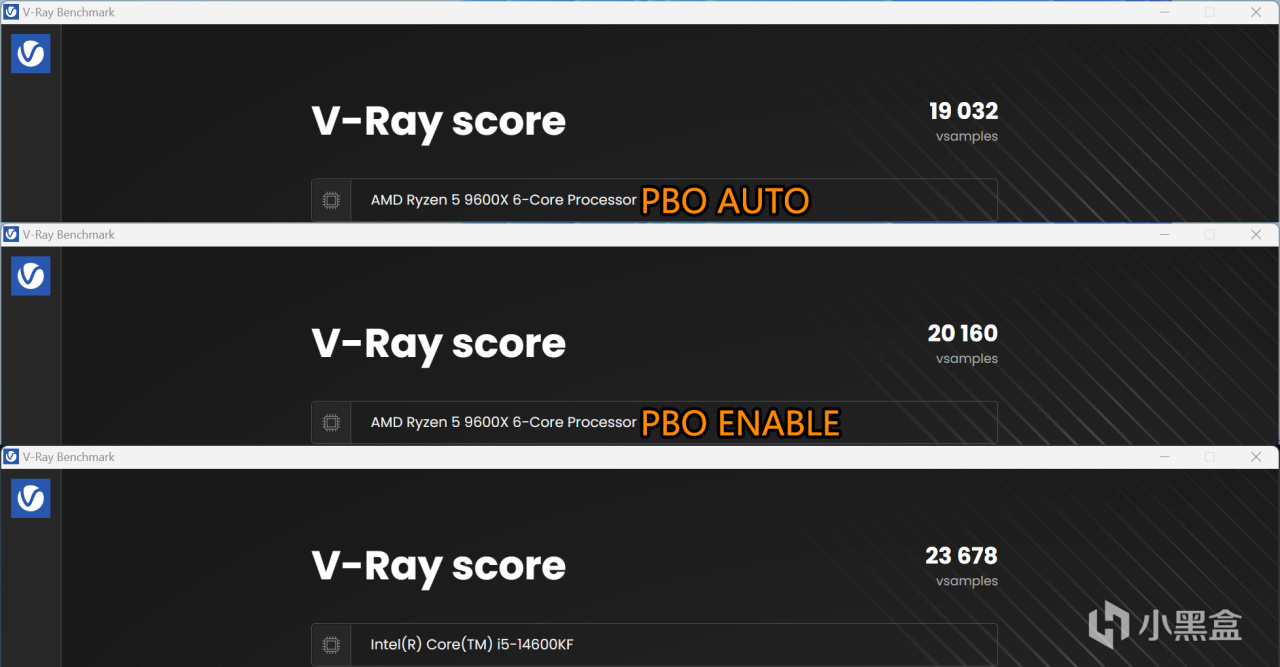 V-Ray也是屬於大型渲染類項目,和14600KF對比差距依然明顯,不過和自家上一代銳龍7 7700X,銳龍5 9600X開啓PBO後,居然能跨級領先30%,之所以有這樣的結果,是因爲該項目還一定程度上關聯單核性能。