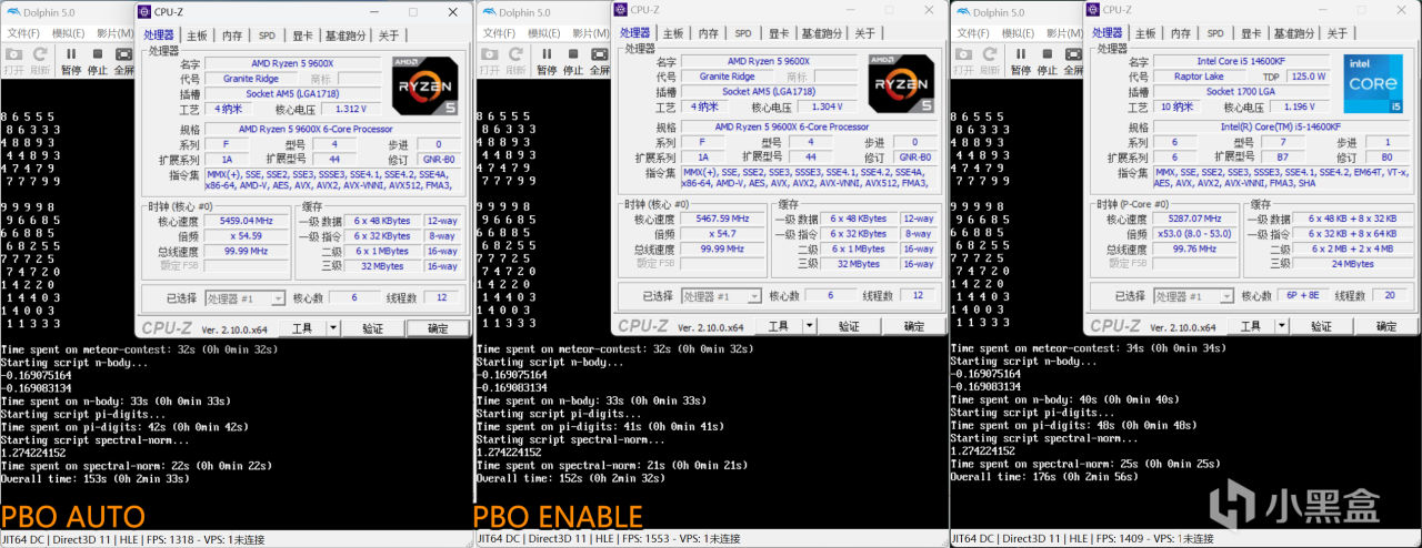 Dolphin則是一款針對GameCube和Wii的遊戲模擬器,完全依賴單核性能,所以是否開啓PBO並不重要,銳龍5 9600X再次展現出強大的單線程性能,此得分甚至可以把i9-14900K遠遠甩開,默全秒的節奏。