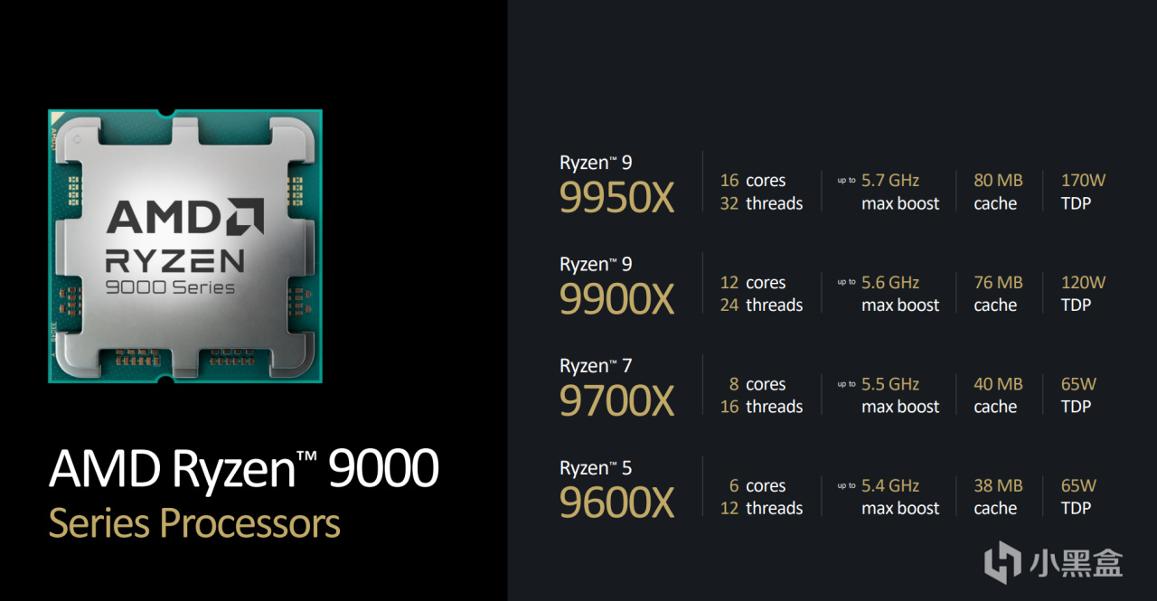 兩款銳龍9的最高睿頻和上一代完全一致,而銳龍7 9700X和銳龍 5 9600X相比同型號提升100MHz,值得一提的是,除了銳龍9 9950X以外,其他型號標稱TDP都要比上一代有所降低,而且官方稱處理器熱阻降低了15%,意味着同等功耗下溫度更低,還有就是JEDEC標準從5200提升至5600MHz。