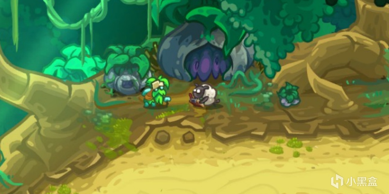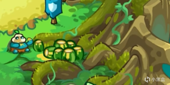 关卡“3.森林之心”,左上方1个胖胖的树灵在吃蜂蜜。出自动画“小熊维尼”系列中,主人公吃蜂蜜的爱好。