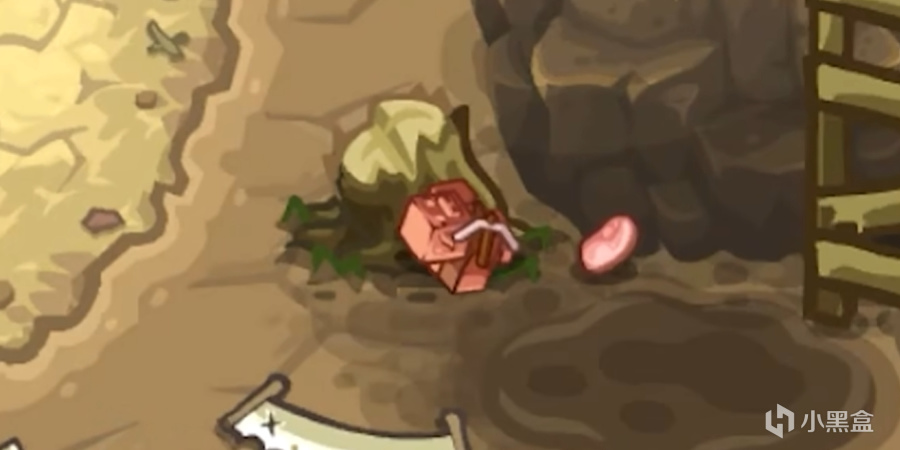 关卡“6.野兽巢穴”,多次点击3处方块猪头矿工,方块猪头矿工会变成猪肉。出自游戏《我的世界》中,杀死猪会获得一块猪肉。