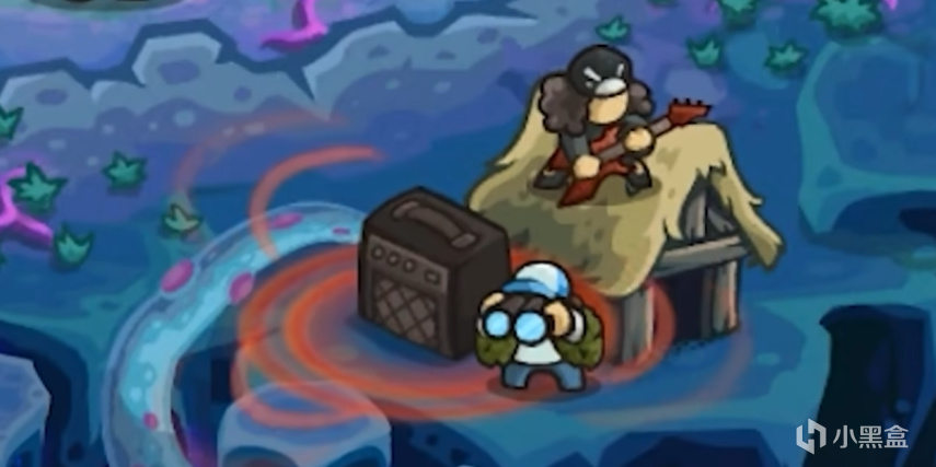 关卡“12.枯萎农田”,左下方两人在木屋上摇滚,被飞怪抓走。出自剧集“怪奇物语”系列第五季中,新角色埃迪的最后一首摇滚,是全季最热血的一幕。