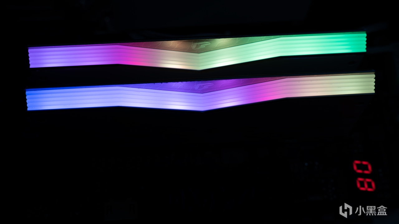 iGame DDR5 7200 Loong Editon通電RGB效果,每根內存的導光層是分爲五條區域,感覺是爲了營造騰雲駕霧的氛圍感。