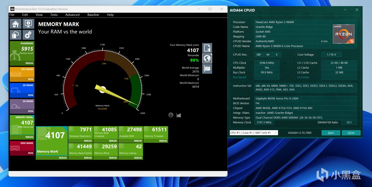 PerformanceTest 11.0中的MEMORY MARK項目,銳龍5 9600X+DDR5 6400C26 16GB*2