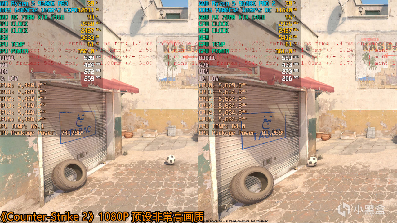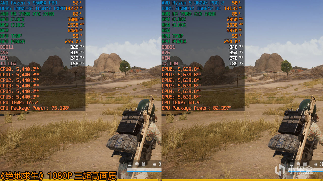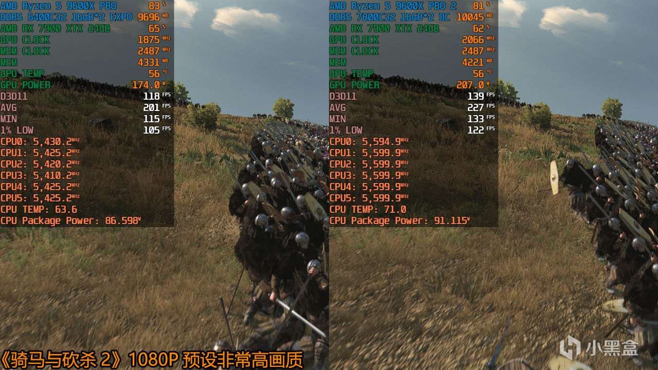 銳龍5 9600X PBO 2+DDR5 7800C32 16GB*2平均幀數76fps,提升9%