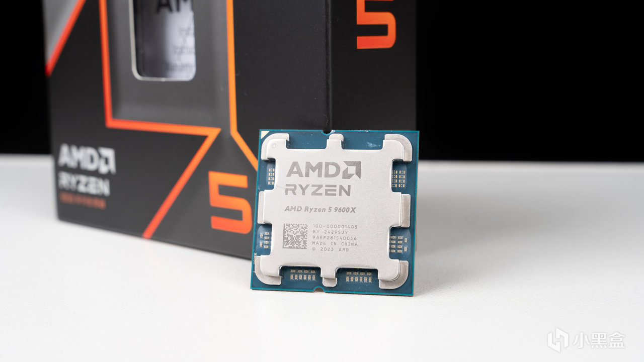 硬核手上的型號是銳龍5 9600X,6核12線程最高睿頻5.4GHz,比上一代銳龍5 7600X提高0.1GHz,搭載32MB L3緩存,標稱是65W TDP,確實功耗低了不少,具體後面會分幾種情況給大家細說。銳龍9000的包裝採用全新設計風格,主題背景由銳龍7000的灰色變成了黑色,同時圍繞窗體的紅色線條也更加粗壯,這不就是暗喻着更強大的性能麼?