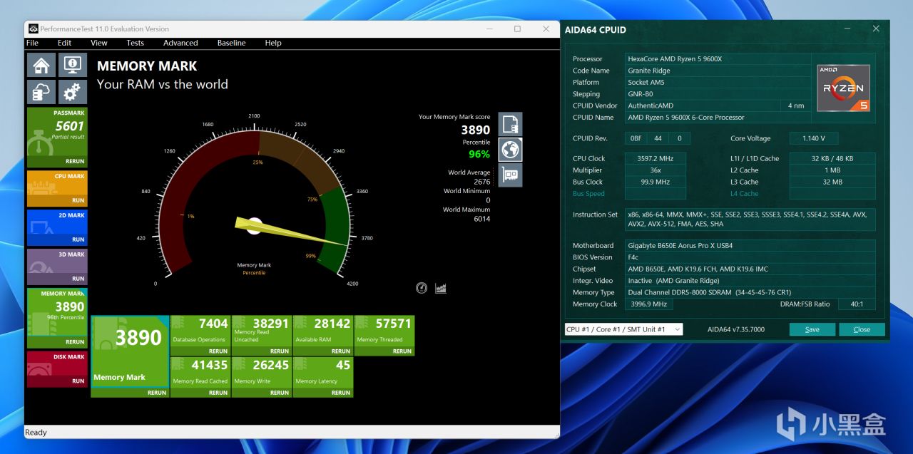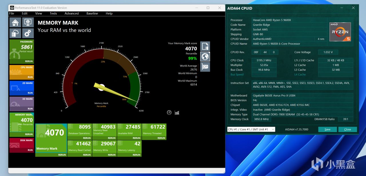 PerformanceTest 11.0中的MEMORY MARK項目,銳龍5 9600X+DDR5 7800C32 16GB*2