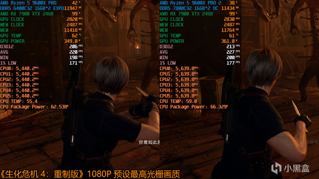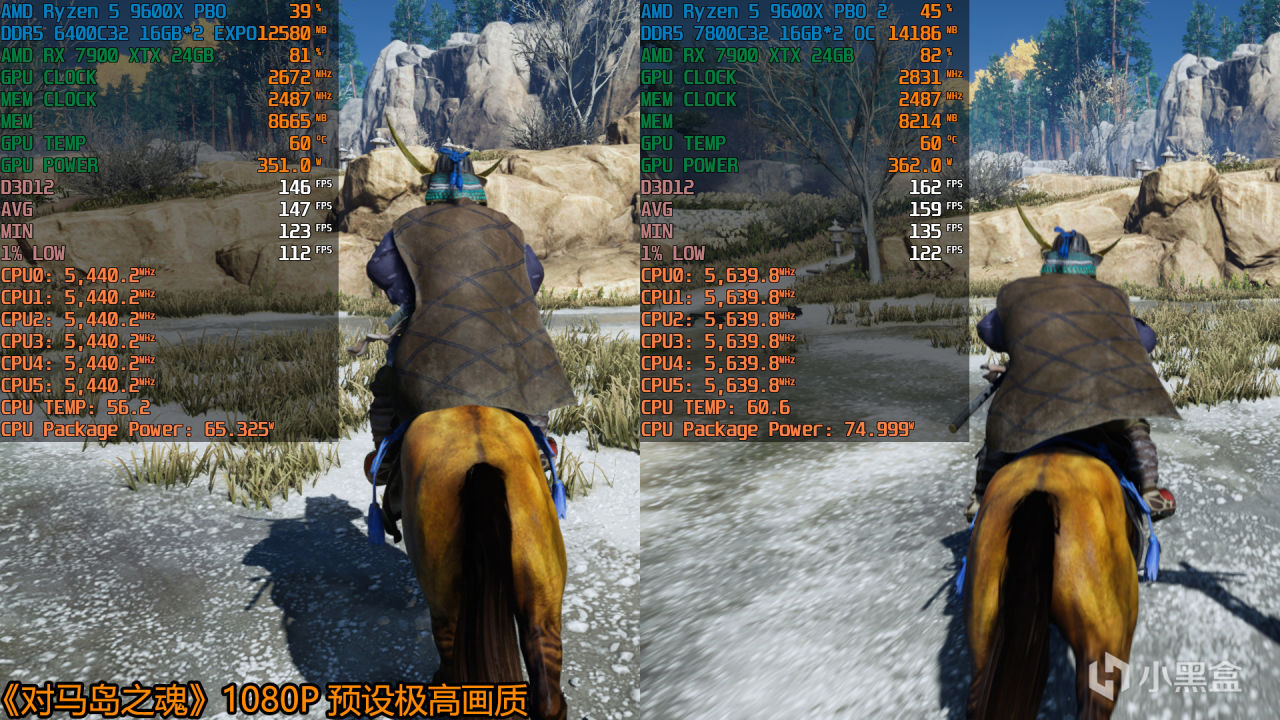 銳龍5 9600X PBO 2+DDR5 7800C32 16GB*2平均幀數159fps,提升8%