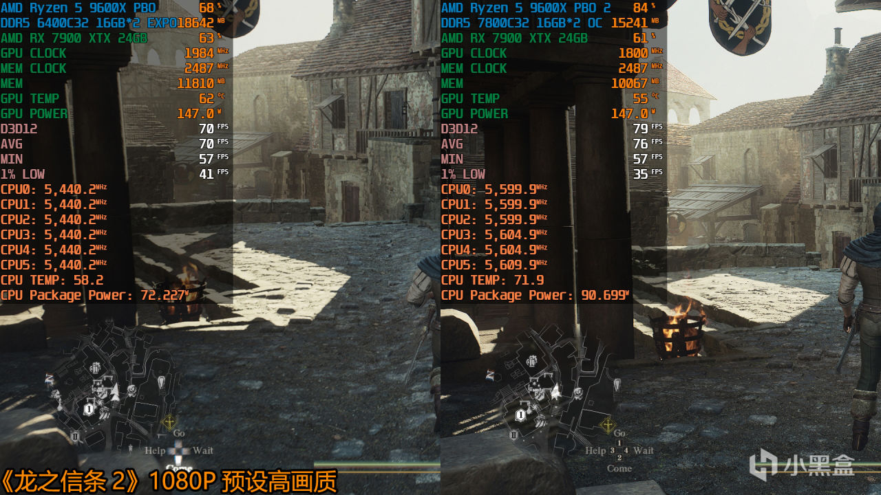 銳龍5 9600X PBO+DDR5 6400C32 16GB*2平均幀數70fps