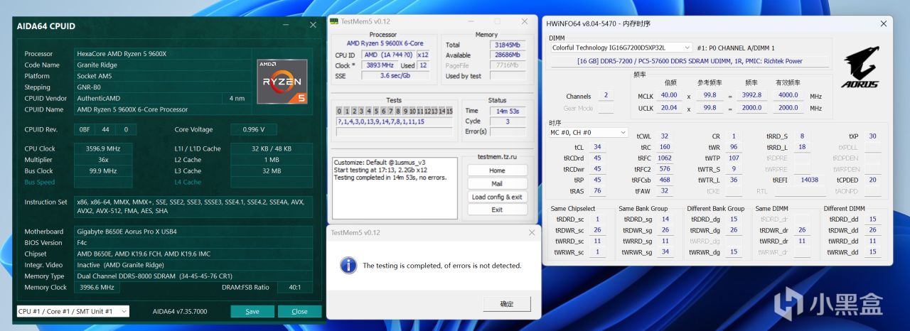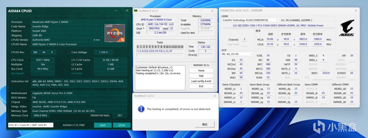 銳龍5 9600X超頻DDR5 7800C32-45-45-58,UCLK=MEMCLK/2分頻,過測TM5 1usmus_V3十分鐘配置烤機,具體小參如上,主時序、副時序和第三時序均有調整