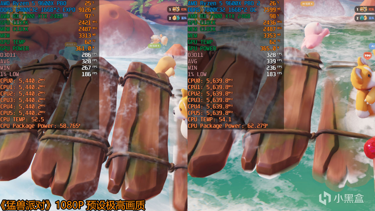 銳龍5 9600X PBO 2+DDR5 7800C32 16GB*2平均幀數354fps,提升11%