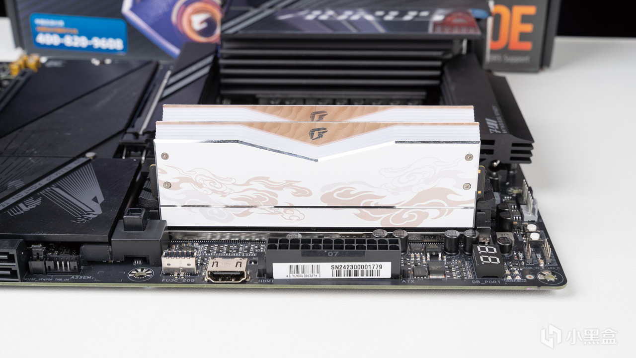 iGame DDR5 7200 Loong Editon安裝到主板上的效果,高度方面接近50mm,由於存在層疊結構,視覺效果看起來確實與衆不同。