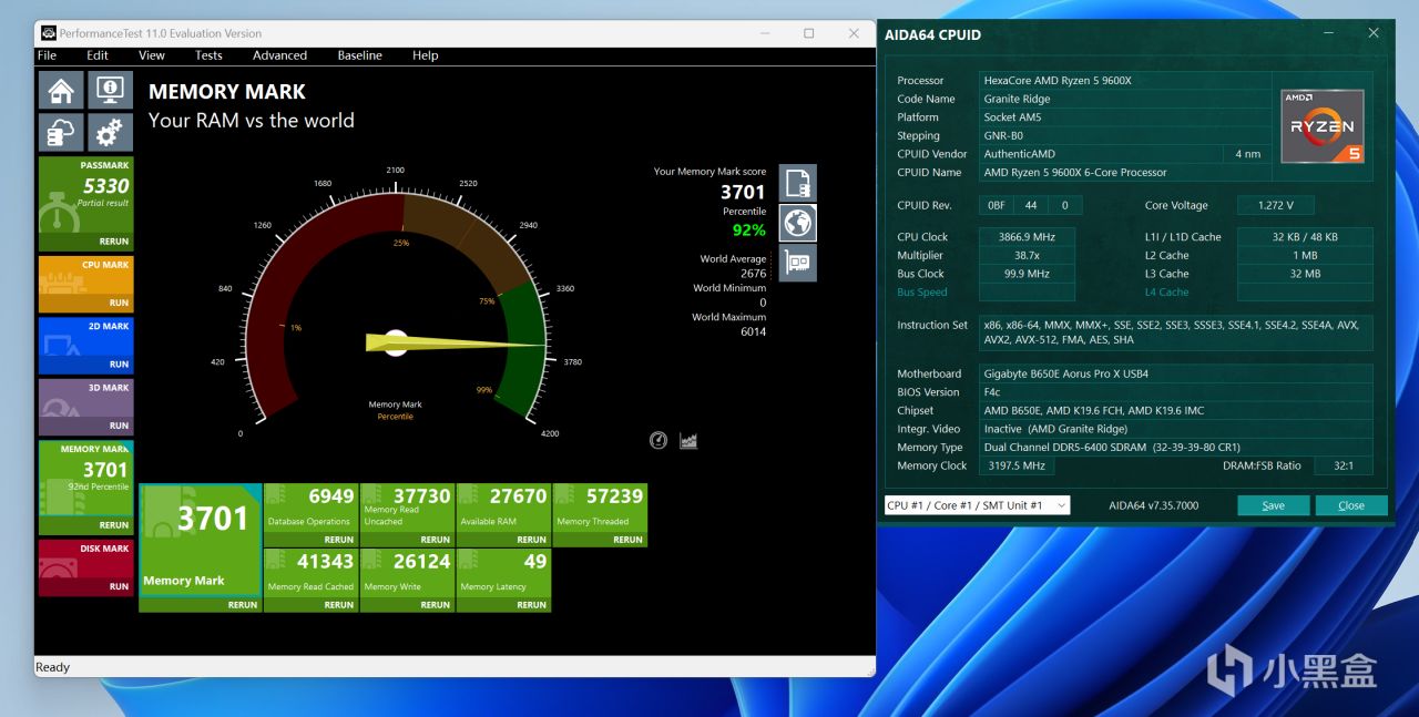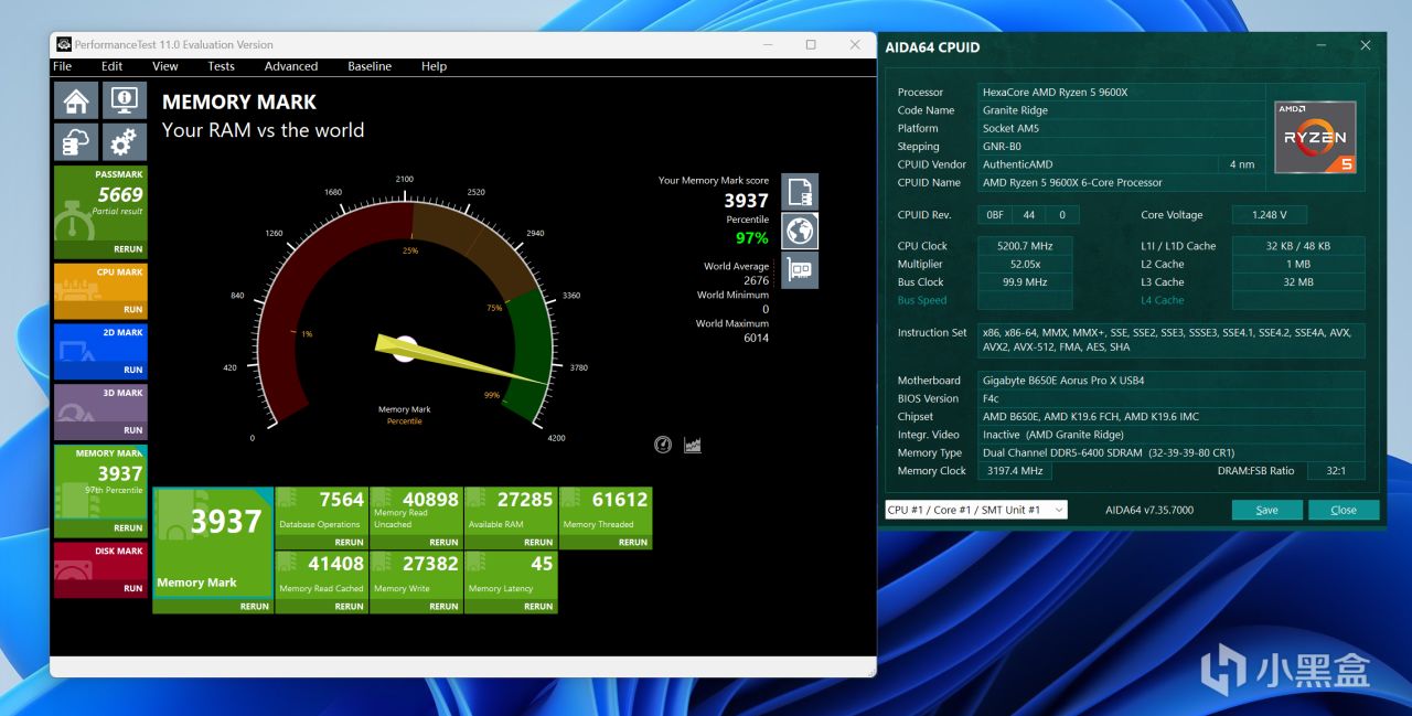 PerformanceTest 11.0中的MEMORY MARK項目,銳龍5 9600X+DDR5 6400C32 16GB*2
