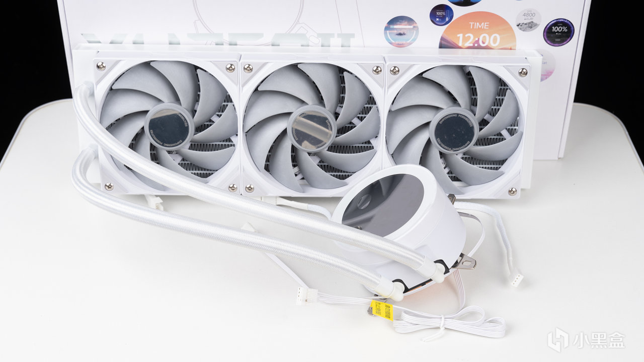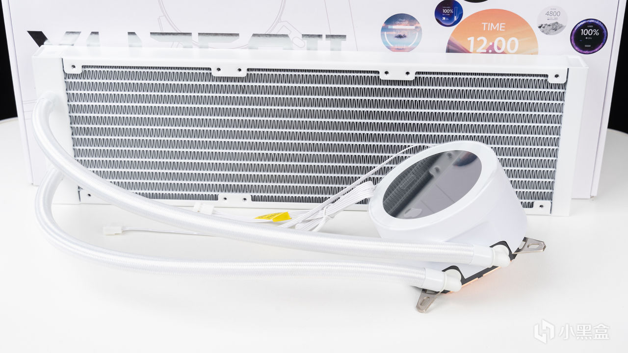 最後介紹的是先馬這款XW360 II-PLUS白色版本,如圖所見它屬於無風扇版本,屬於先馬自家的自研性能水泵方案,水冷頭上搭載了一塊可拆卸的磁吸圓形屏幕,2.8英寸+480X480分辨率+IPS面板屬於主流規格,不止如此,屏幕可玩性纔是它最大的亮點。