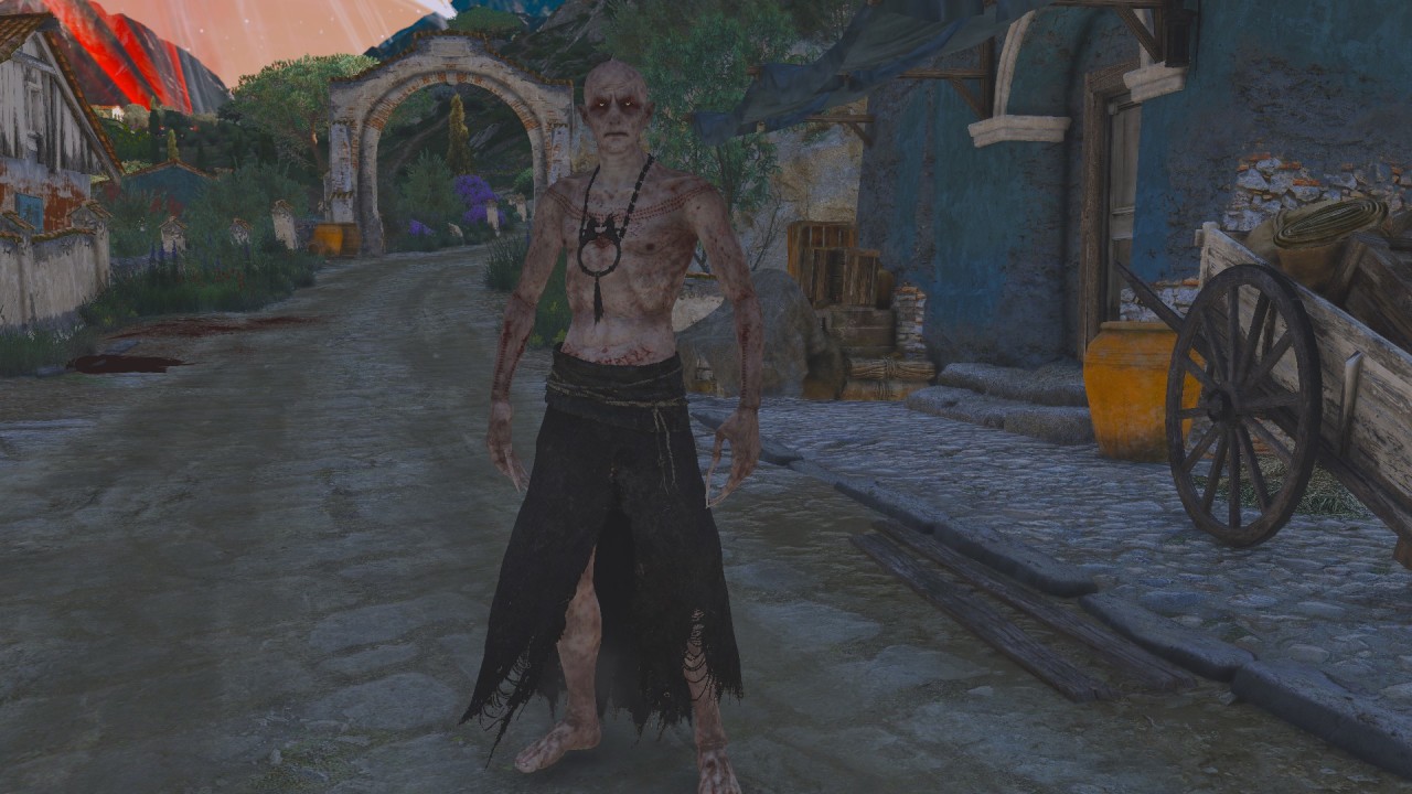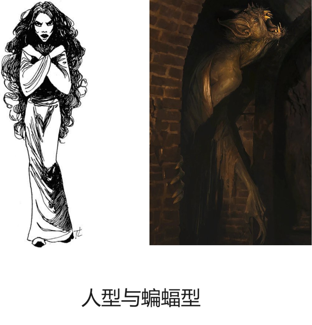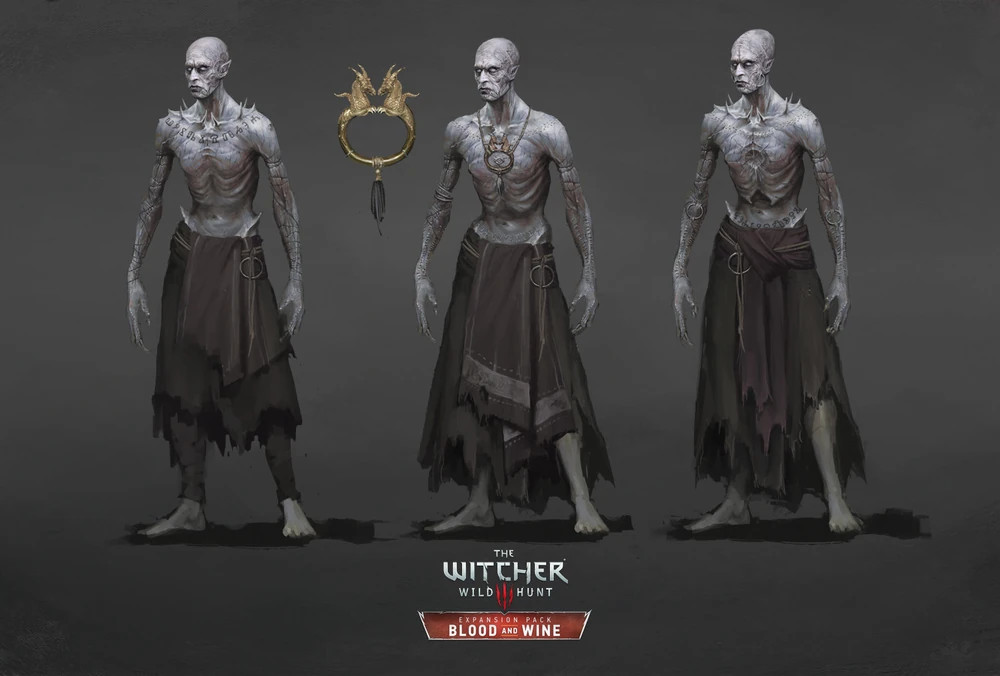 这些普通的吸血鬼形象以民间传说的形式存在于巫师三的世界里,因为高等吸血鬼在外貌上几乎与人类无异,如果一个高等吸血鬼不想让你发现他,即使是猎魔人也无法分辨,因为猎魔人的徽章无法识别高等吸血鬼。