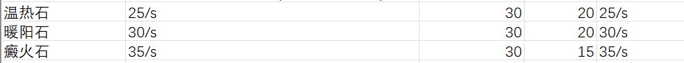 溫熱石與暖陽石效果無法疊加,但二者均可以和癲火石疊加。