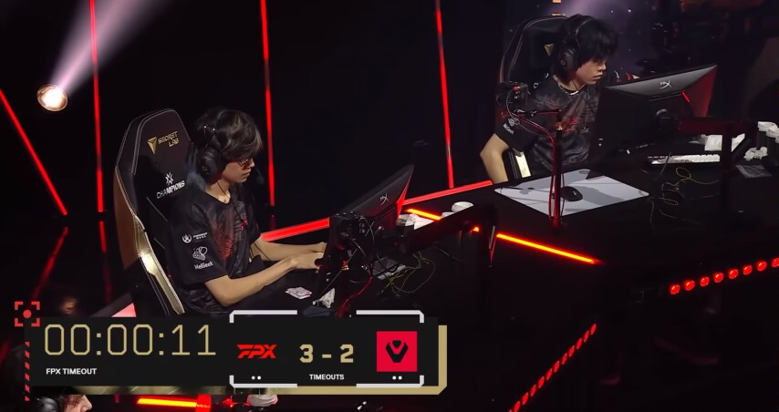 賽點局兩邊B點對槍,FPX爛掉,下半一分不拿直接輸掉比賽。