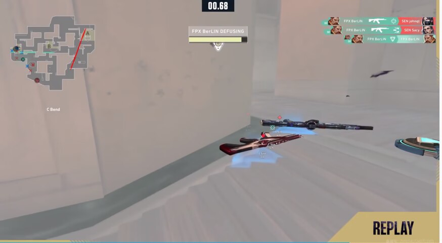 第16回合SEN打C,FPX回防berlin四殺團滅SEN,但已經被SEN拖到不夠拆包,FPX0.68秒輸掉了這一分並且進入ECO局。