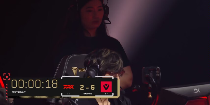 SEN直架卓有成效,FPX麼得決鬥,點都進不去,叫出暫停依舊,被SEN架的死死的,槍也軟的不行,連輸四回合,FPX 2-6 SEN 天崩開局叫出最後的暫停。