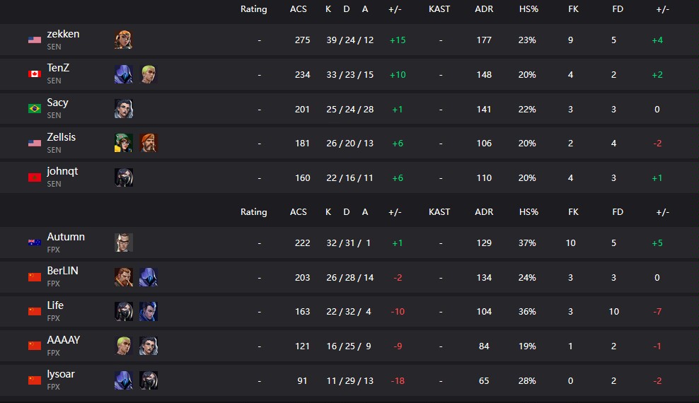 FPX防守開拿下手槍局,autumn更是獎勵局四殺回提了一波士氣。SEN拿下長槍局。比分來到 FPX 5-10 SEN
