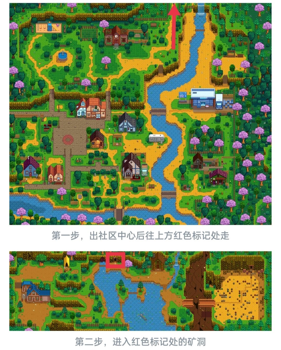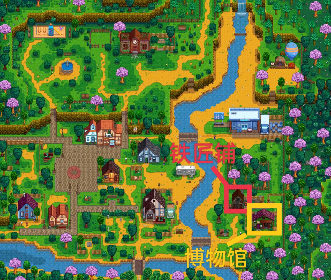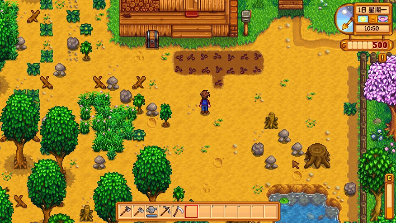 起床浇水,早上9.后到铁匠铺拿钢十字镐/钢斧头,至此,我们十字镐和斧头就都是钢级别了(大家在平时去铁匠铺的路上可以把要捐赠的古物或矿物带上,毕竟博物馆就在铁匠铺旁边),接着带上钢斧头,往我下图煤矿森林的方向去,把拦路的枯木干砍掉(钢斧头才能砍),我们就能进入秘密森林区域了