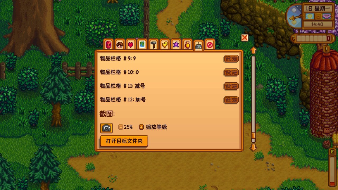 做完上述一切事情后,我们能量(体力)消耗的也差不多了,这时大家可以去到处走走,了解一下地图,看到村民就聊一下天,看到垃圾桶就翻一下,每到达一个新区域时,你可以按Esc打开背包,选择选项,划到最下面点击一下摄像机按键就能截图,这个是可以把你目前所在的整个区域截图出来的,截图完成后点击“打开目标文件夹”就能查看截图