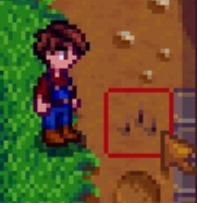如果你在路上看到小蚯蚓,用锄头可以把它挖掉,会掉落一些物品