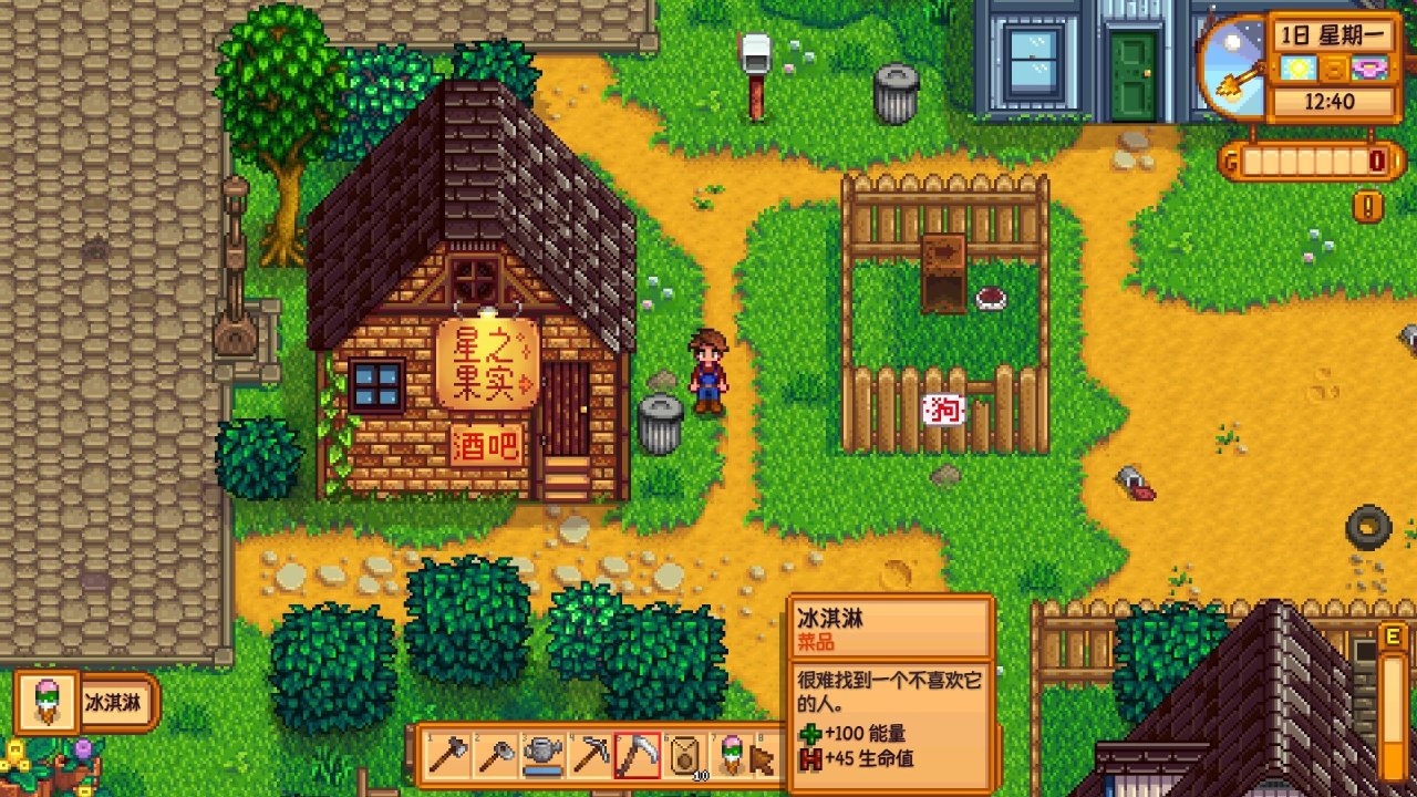 (平时你在小镇上看到垃圾桶也可以去翻一下,有时会有意想不到的收获,比如我下面就翻到了一个冰淇淋,但要注意,不要在村民面前翻,会掉好感度)