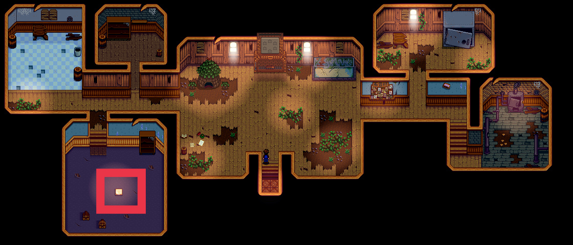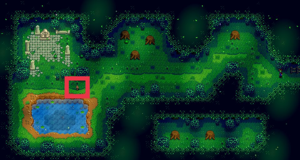 做完上面的事情,我们去查看邮箱,会有一封法师寄来的信,他让我们去法师塔找他,法师塔就在煤矿森林的西北方向,下图标记处,我们去找他就会触发剧情动画,之后我们会获得森林魔法,这时我们就能看懂社区中心里金色卷轴的内容,也就正式开始我们社区中心的献祭路线了