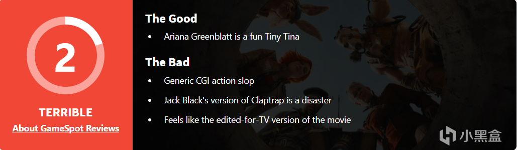 由開發商Gearbox製作的遊戲《無主之地》系列真人改編大電影媒體評分現已出爐,其中爛番茄3%新鮮度,IGN打出了3分,GS打出了2分,M站則給出32分。以下是具體的媒體評分:
