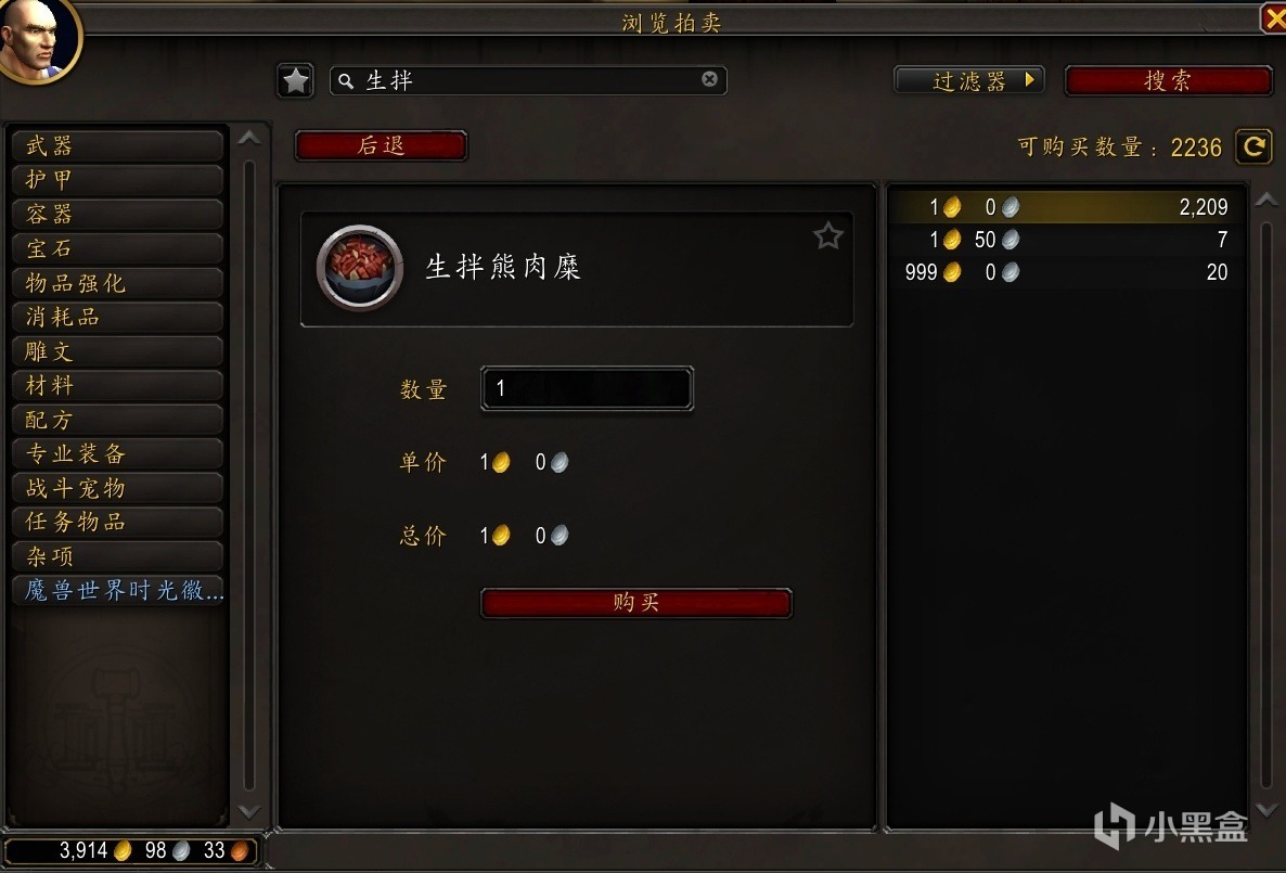 除此之外,为了方便后续解密,还请准备一些加速食物和道具,鸦鸦准备的是【生拌熊肉糜】,该食谱掉落于军团再临版本,价格很便宜,不用特地去刷,直接买一些成品就行,不用买太多。