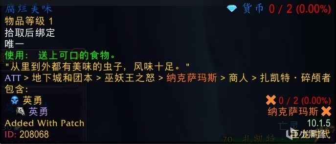我们救出的那个地精不止出售装备材料,还可以在他那里用30个【死神的筹码】换取一枚【腐烂美味】。