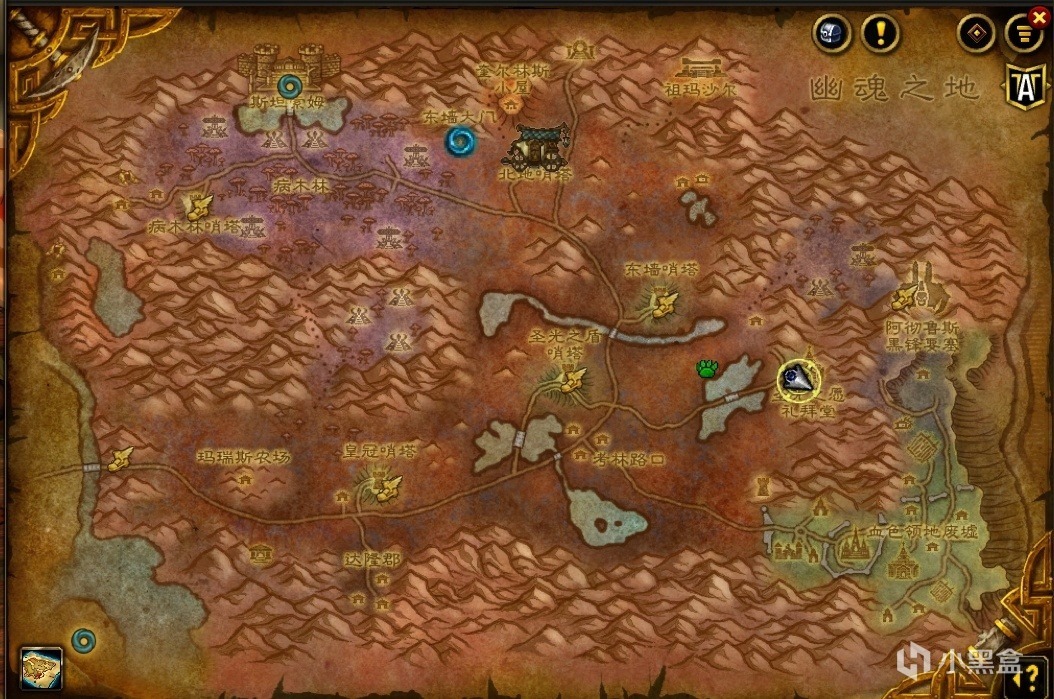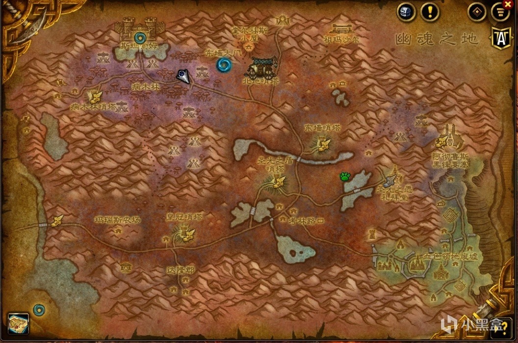 获得成就后,前往东瘟疫之地的【35,23】,也就是图示位置,就可以看到旧纳克萨玛斯的入口了。