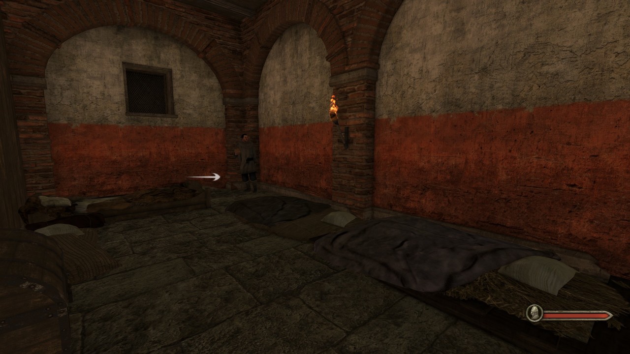 來看看酒館睡覺的地方,感覺條件不是很好。這裏的休息區不同於城中豪華旅館的柔軟牀鋪,而是採用了一種更加傳統的方式——地鋪。地鋪由或薄或厚的墊子構成,它們整齊地排列在寬敞的房間內,爲每一位客人提供了一個舒適的小天地。雖然沒有牀架,但這些地鋪經過精心的鋪設,能夠提供足夠的支撐和溫暖,讓人在勞累一天後能夠迅速沉入夢鄉。
