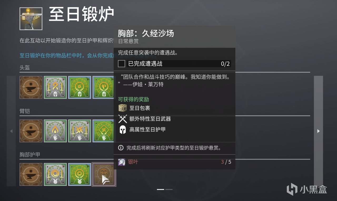 至日煅爐的懸賞任務作用②→該護甲白光後,金懸賞必出高屬性至日護甲/雙PERK至日武器,綠懸賞幾率出高屬性至日護甲/雙PERK至日武器,白懸賞極低幾率出高屬性至日護甲/雙PERK至日武器