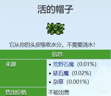 ⑥有0.001%的幾率掉落一頂活的帽子。