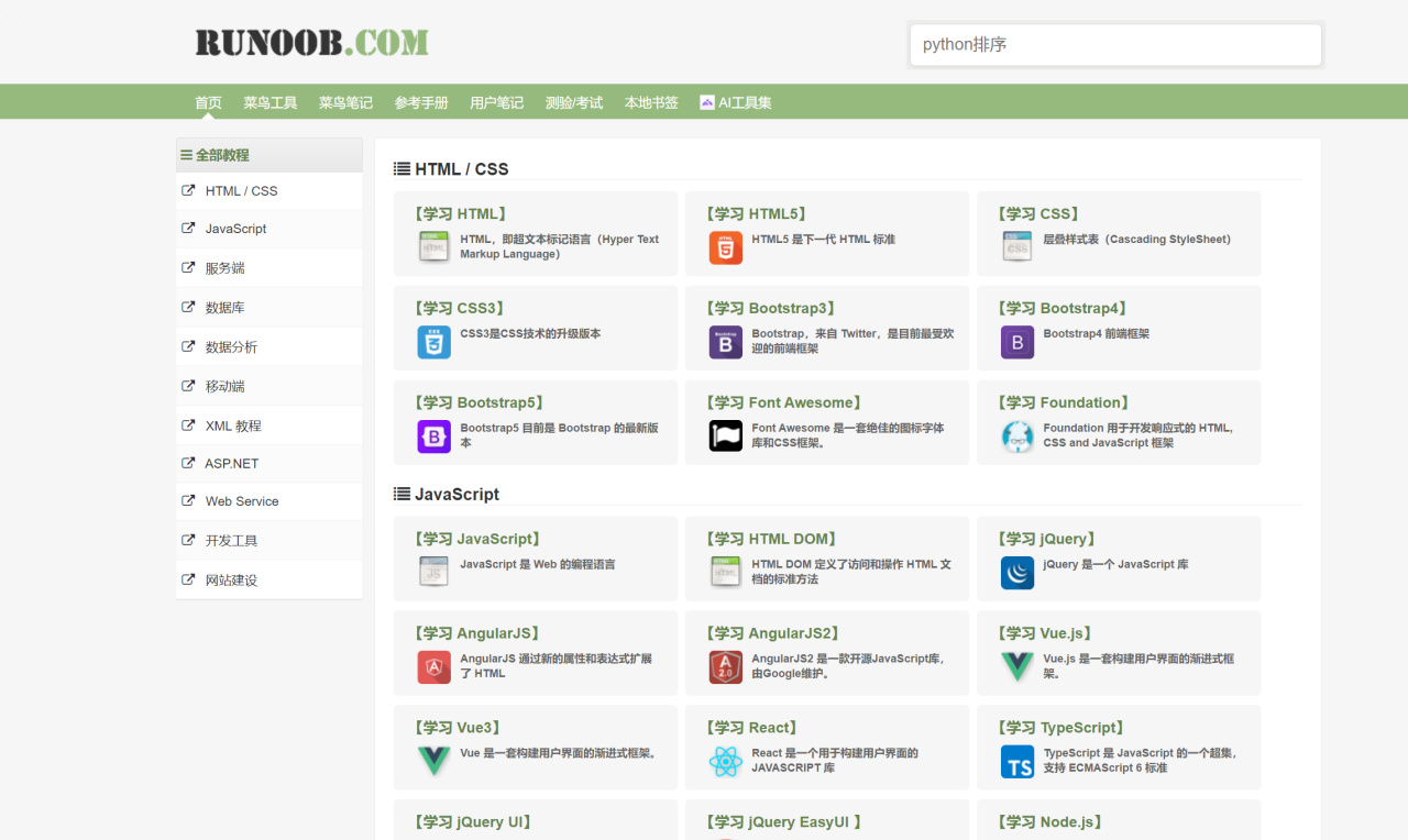 8.菜鸟教程 https://www.runoob.com