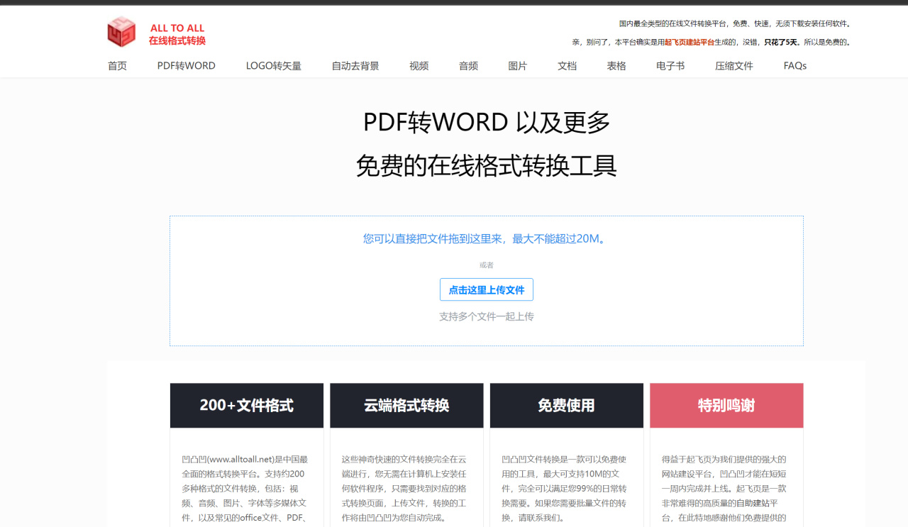 超赞的格式转换网站!免费的在线格式转换工具,有着PDF转WORD,视频、音频、图片等各种格式之间的转换!