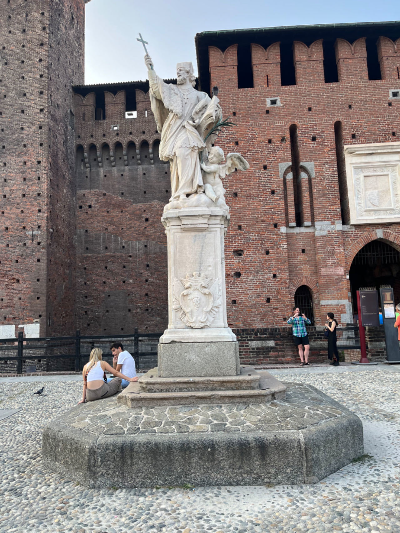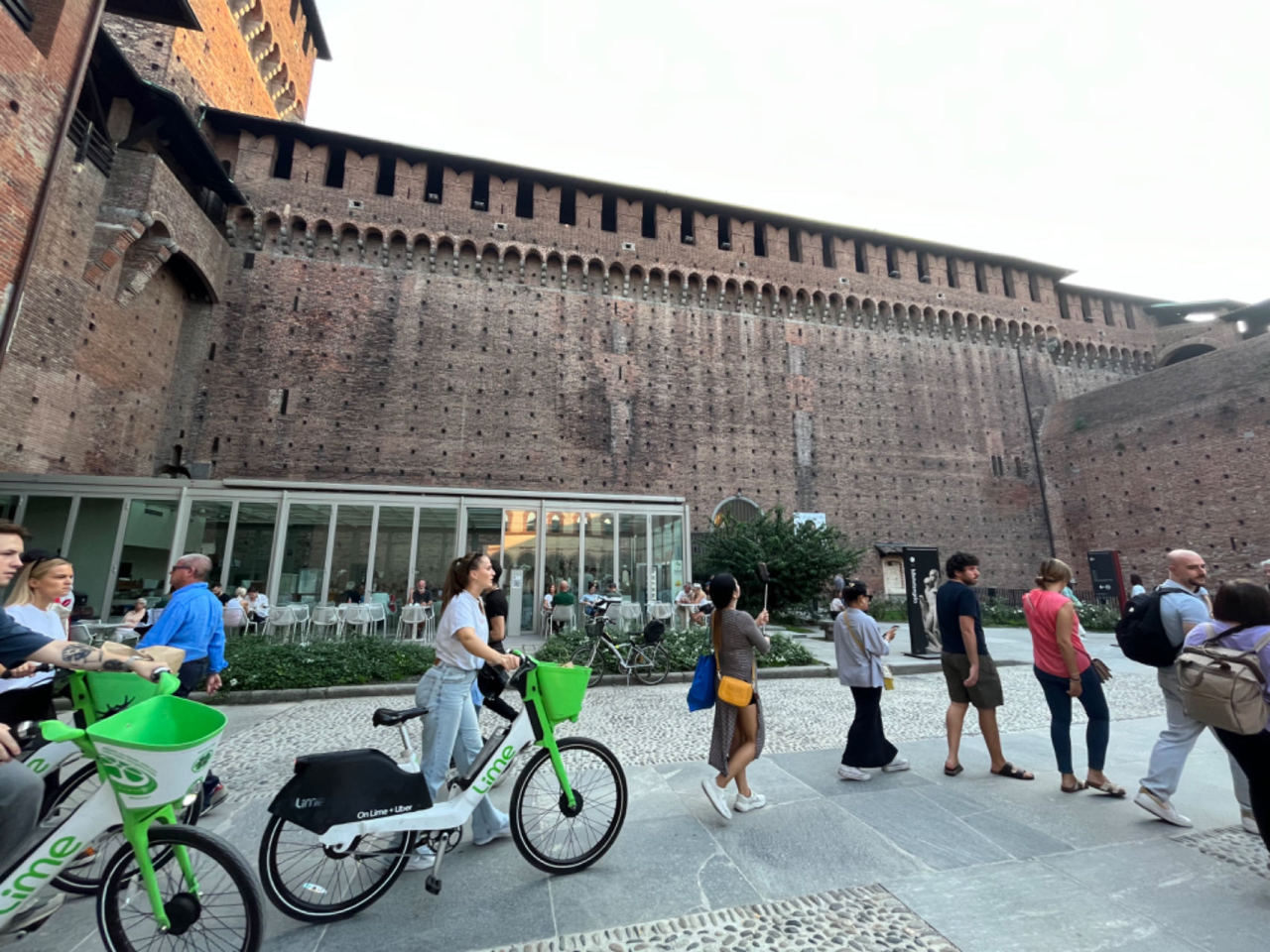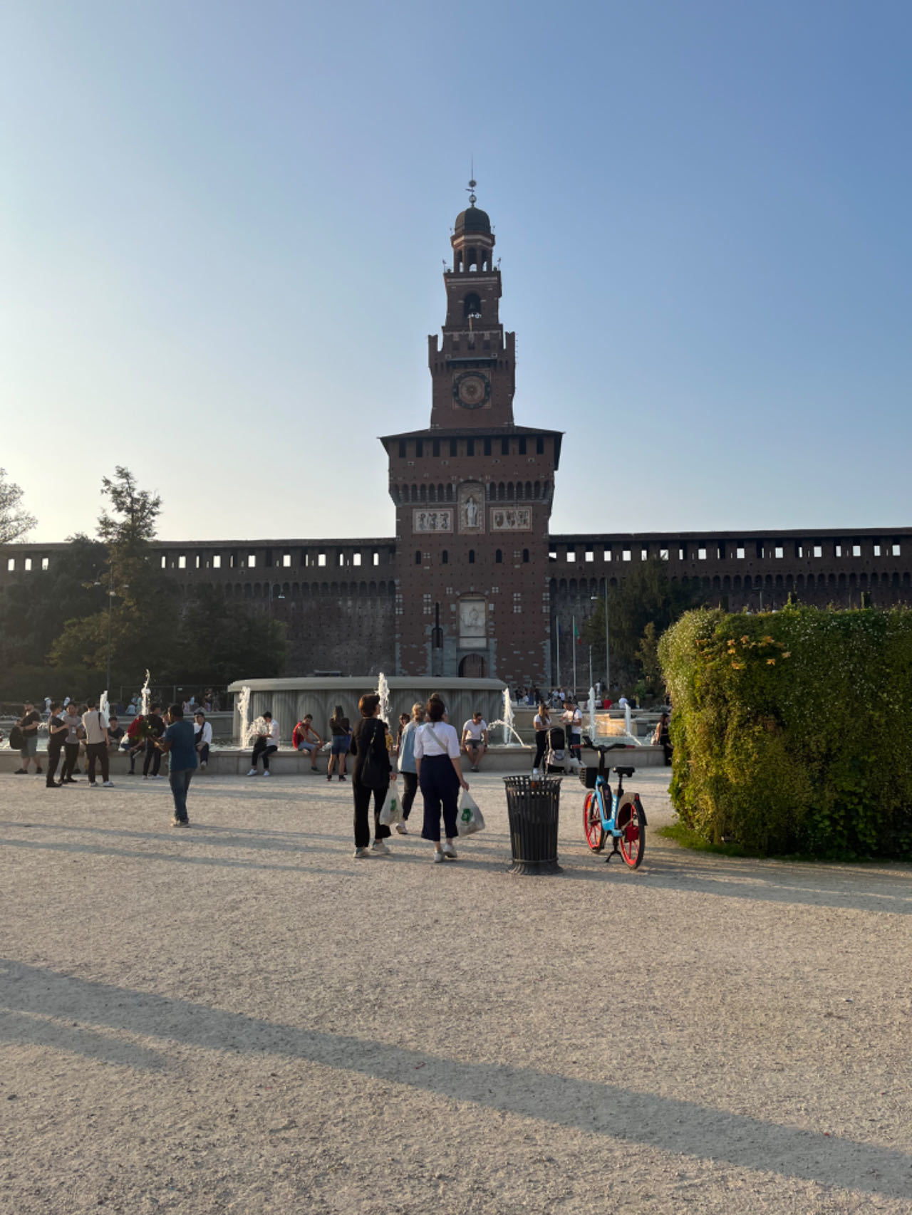 我准备去斯福尔扎堡,室友要去其他地方看展。分道扬镳前我们一起等公交车,先是有个拖家带口的中东大叔问我会不会英语(我看上去像意大利人吗),得到肯定的回答后继续问我这里是不是某某车站,然后道谢。
