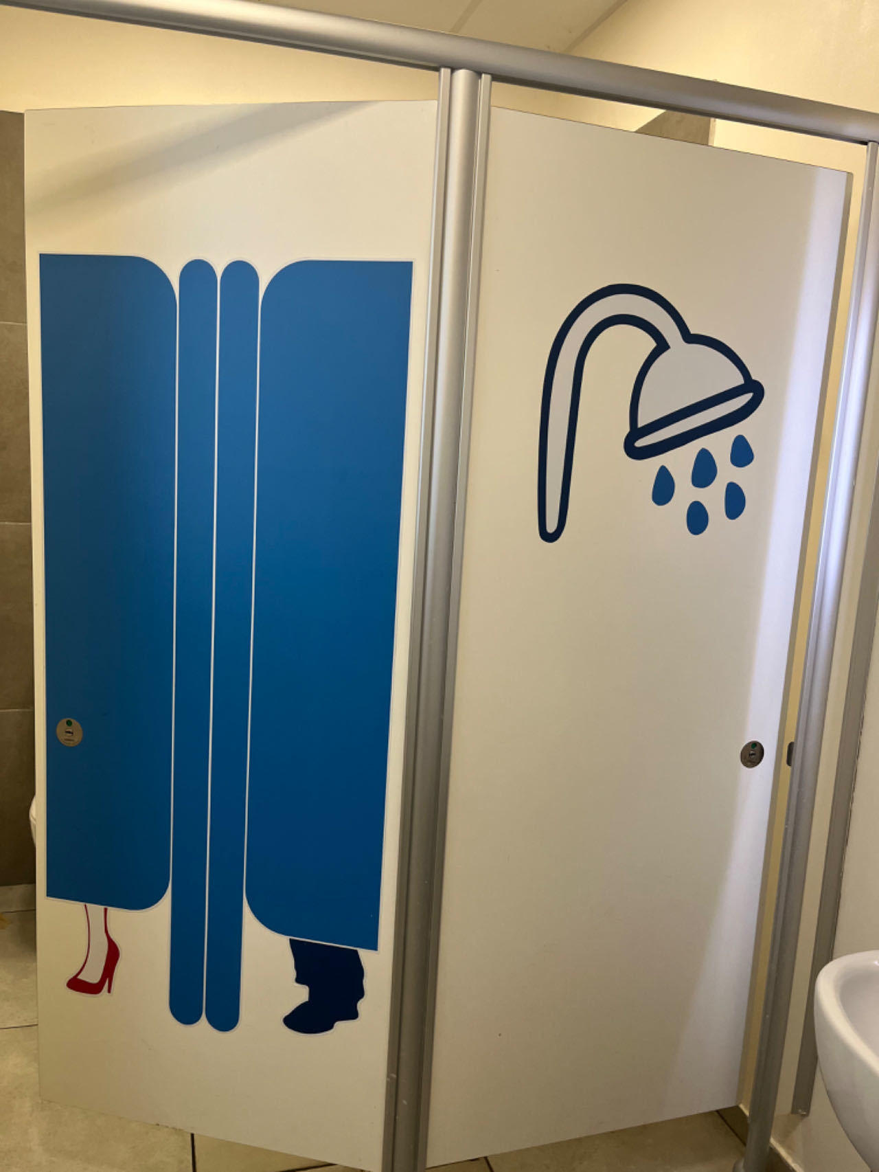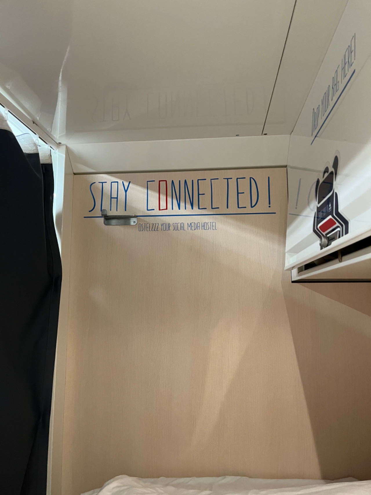 这家青旅设施挺齐全,有遮光窗帘、床灯和空调,保险柜带轮盘锁(可惜我的坏了)。地面很干净,床铺也整洁。唯一的不足之处是床边的插座只有一个欧标的,其他都是意标的,而我这次忘带意标转换器了。