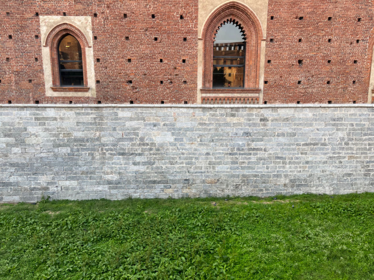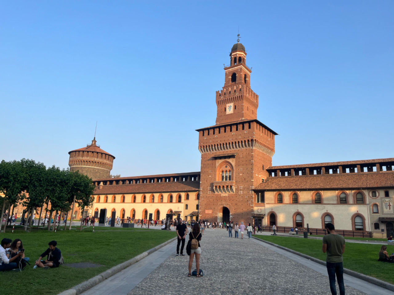 这城堡搁米兰公国时期也是限制区域,就像威尼斯的总督府和佛罗伦萨的领主宫一样。护城河早已干涸,我无需绕过负责警戒的中世纪士兵,大摇大摆地从城门走进去,欣赏沿路风景。