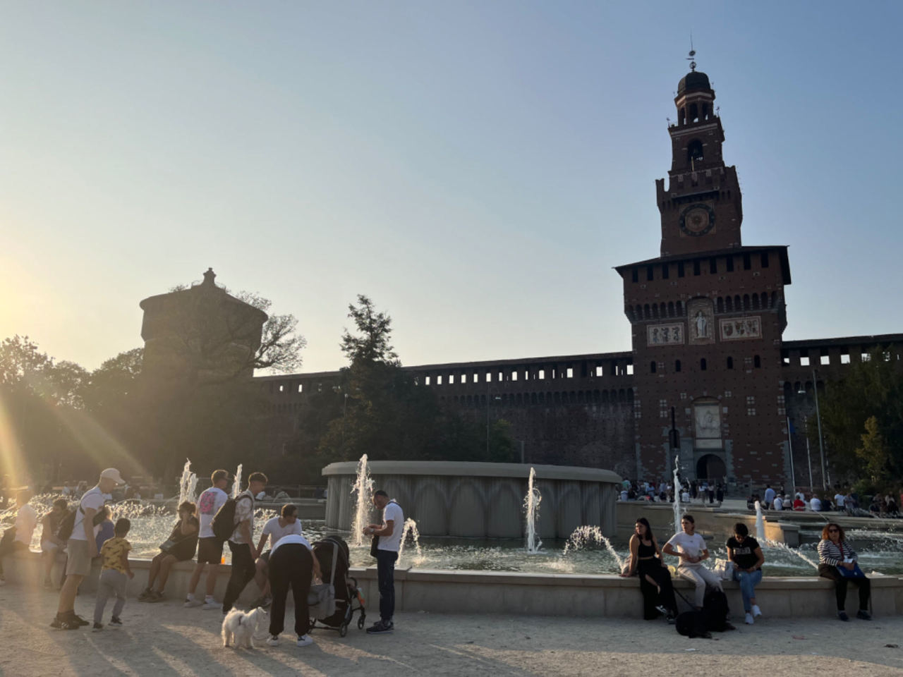 于是改乘地铁来到斯福尔扎堡站,出站后还要走一段距离,穿过几个人行道,需要注意往来车辆。欧洲纬度高,天黑的早,下午五点时太阳已经开始西垂了。
