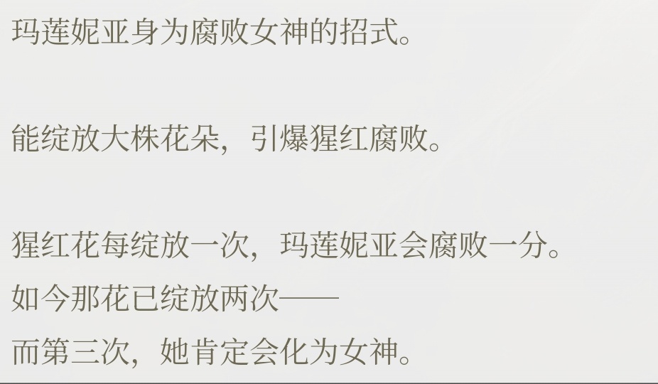雖然腐敗之神被封印,但腐敗並沒有因此而完全消失,腐敗的信徒們更沒有罷休,他們在腐敗湖修建了宮殿,等待那古老神祇的迴歸。
