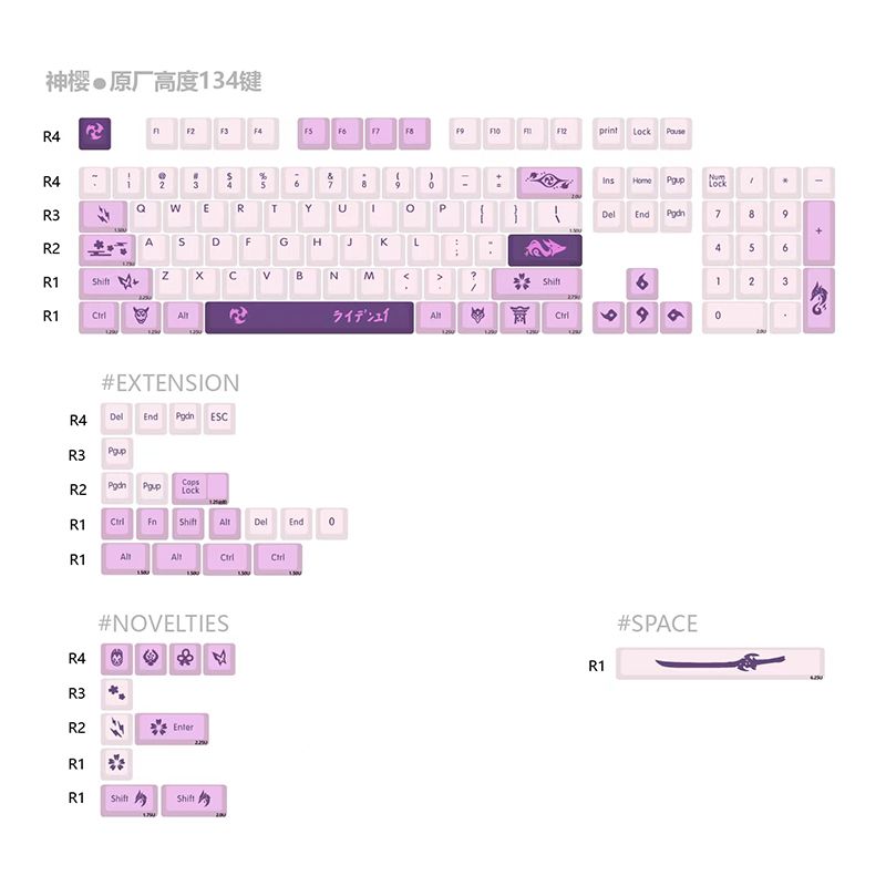 鍵帽:採用雷電將軍神櫻(小字符)和龍乘落櫻雙拼