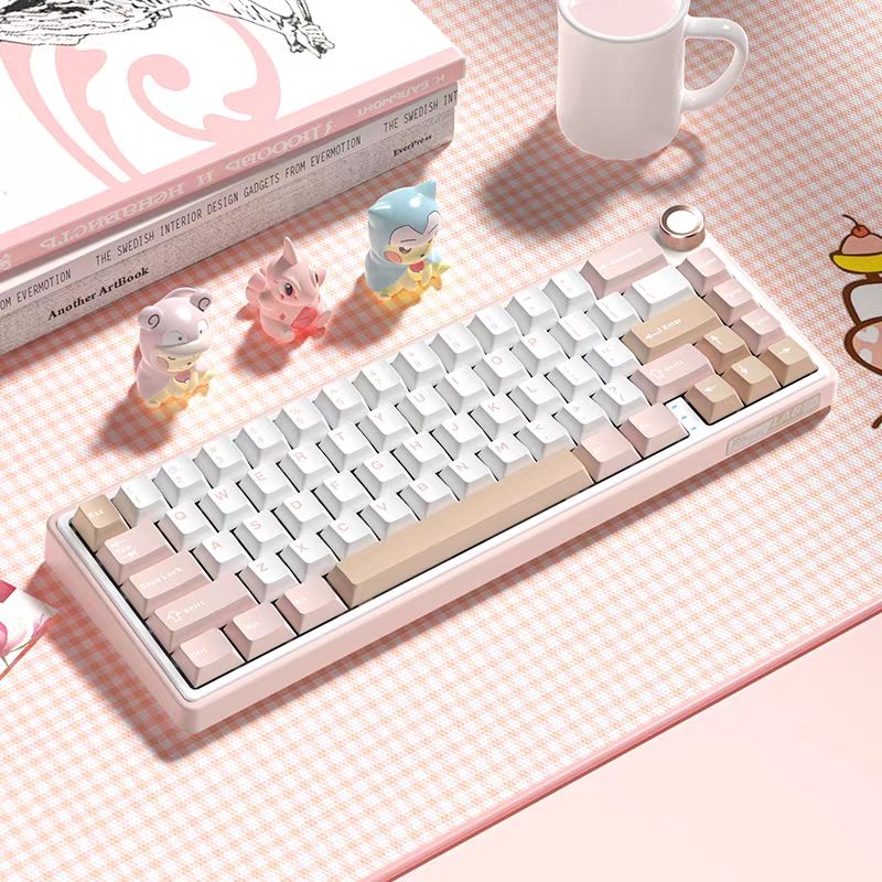 套件:rk R65粉色三模無線款,顏值高,帶有小旋鈕,支持驅動改鍵。