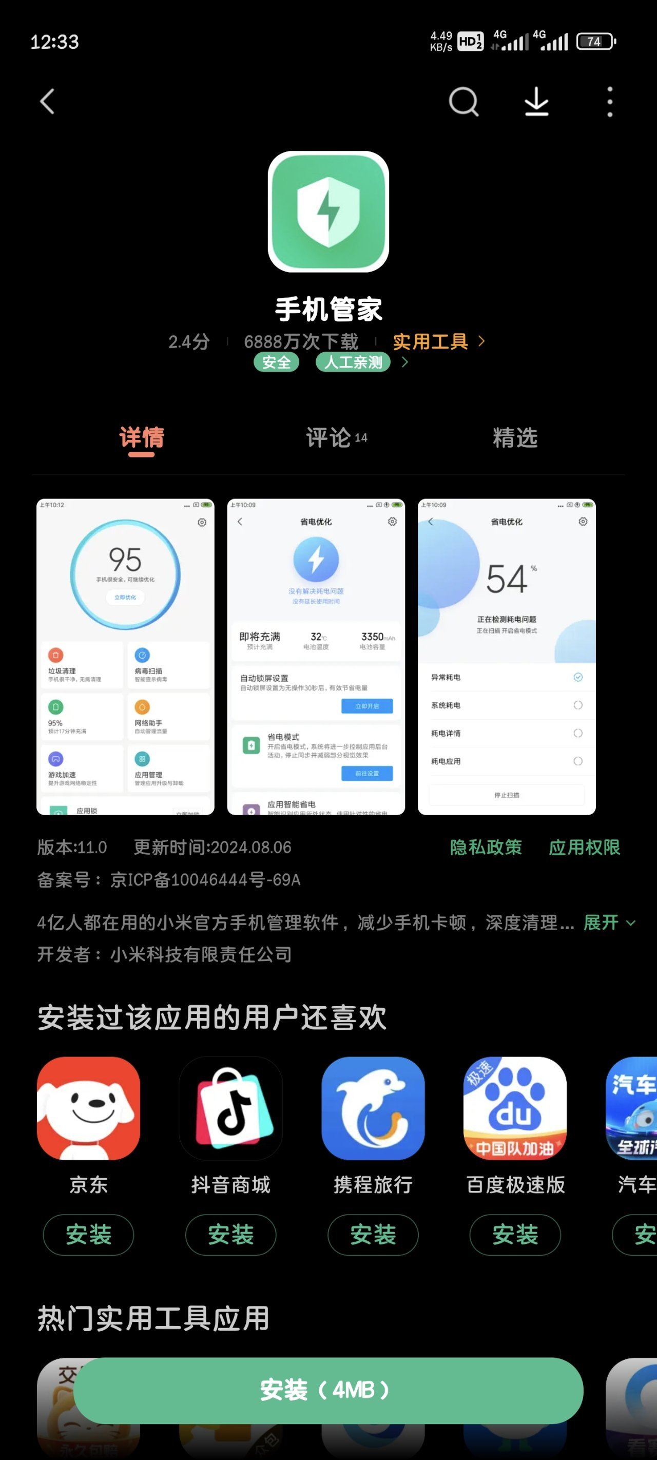 5,我是小米澎湃,有一个应用手机管家,那个球球一直转,说我的手机评分是红色的,我真的服了,眼不见为净!