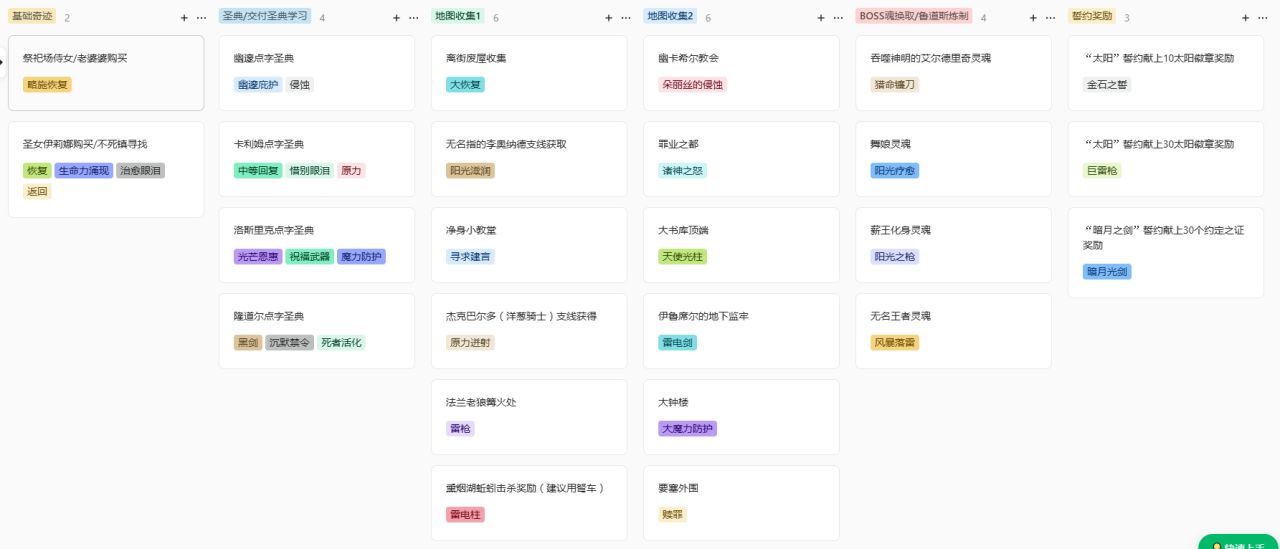 同時呢,筆者建議各位想要白金的玩家要充分利用手機的記事本功能,將未收集的魔法/咒術/奇蹟/動作/特殊獲取戒指都記錄在備忘錄裏,並記好每個物品的獲取方式以及是否與其他物品互斥。