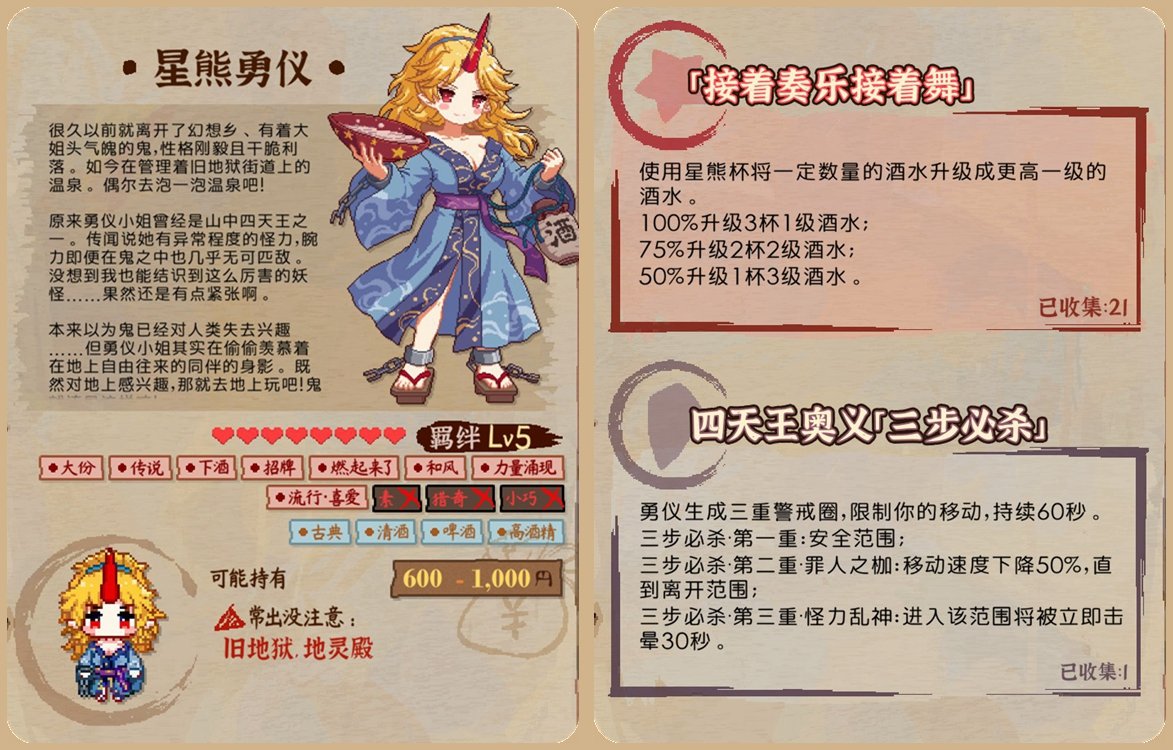 新增酒水:鬼杀、天狗跃、气保健、古明地冰淇淋。